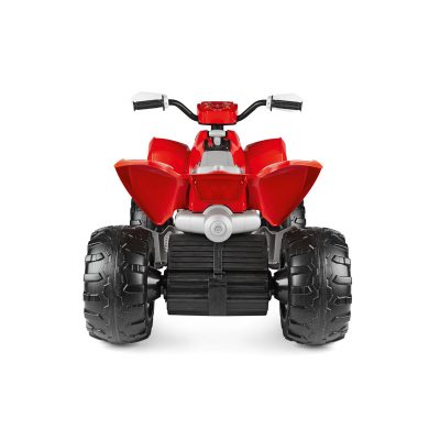 Angetrieben wird das Quad von zwei 12 V Elektromotoren, die über ein Gaspedal angesteuert werden. Es befindet sich auf dem linken Trittbrett und dient gleichzeitig als Bremse. Sobald man vom Pedal geht kommt das Fahrzeug zügig zum Stehen. Mit zwei Vorwärtsgängen kann das Geländefahrzeug bis zu 7,4 km/h schnell fahren. Der zweite Gang kann bei Bedarf anfänglich für unerfahrenere Kinder mechanisch gesperrt werden, so dass nur im ersten Gang mit gedrosselter Geschwindigkeit gefahren werden kann. Dank Rückwärtsgang wird auch das Rangieren bereits in frühen Jahren gelernt. Der robuste Rammschutz und die große Sitzfläche machen das Quad zu einem echten Hingucker. Der Handschutz schützt die kleinen Hände der Nachwuchs-Offroad-Fahrer vor Wind und Wetter.