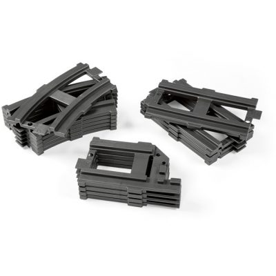 Das Schienenset ist eine Erweiterung zu den Schienen die im Lieferumfang der Eisenbahn enthalten sind. Das Set besteht aus 10 Schienen und einem Schienenkreuz. Zusammen mit den bereits 12 vorhandenen Schienen kann beispielsweise eine Rundstrecke in Form einer 8 aufgebaut werden. Diese 8 benötigt einen Platz von 195 cm x 430 cm.